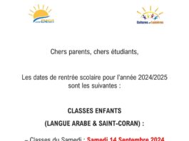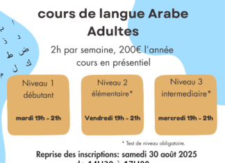 Cours de langue arabe 2025-2026 Adultes