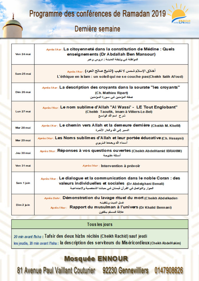 ActualitéAu programme programme conférences Par Ennour - 24 mai 2019 1903 Partager sur Facebook Tweeter sur Twitter tweet